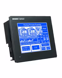 Працюю на фасувальному верстаті, там така панелька стоїть. Mitsubishi, GT10 серія. Екран невеликий, всього 3.7 дюйми і ч/б, але цифри й схеми видно добре, підсвітка зелена очі не ріже. Підключили через RS232, все по Modbus працює. Для наших задач – саме те. Надійна штука, а це головне.