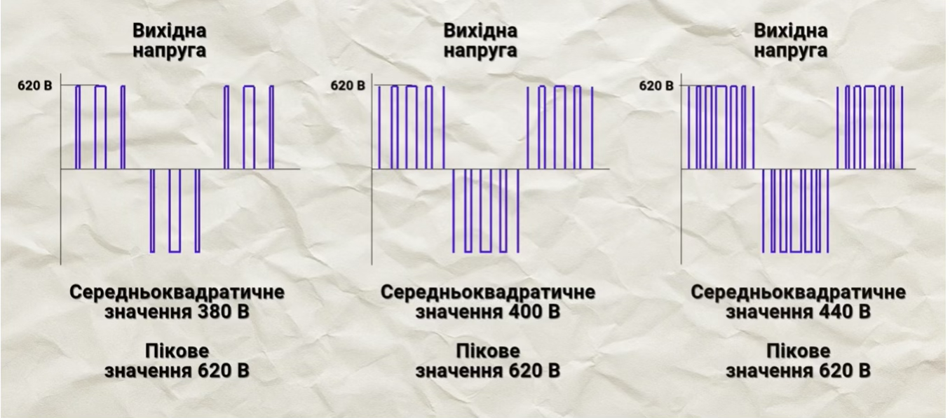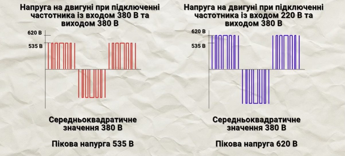 Если у обычного частотника это пиковое 535В, то у этого будет 620 В, то есть на 15% выше